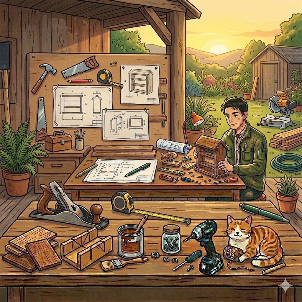 以前、屋根だけ作った状態でずっと放置してしまっていた裏庭の物置……。🛠️💦